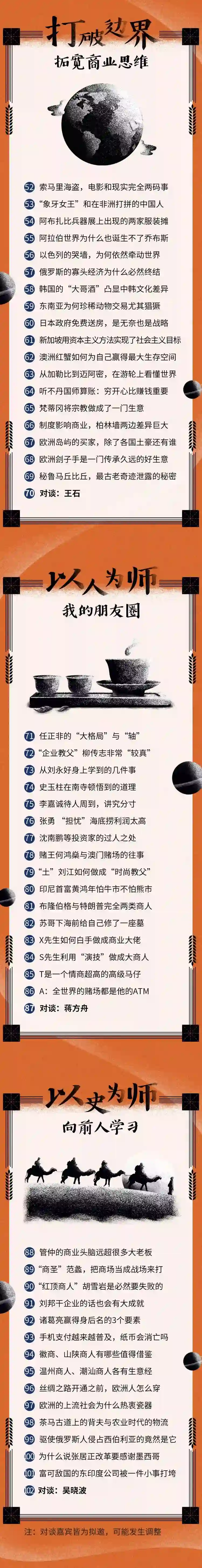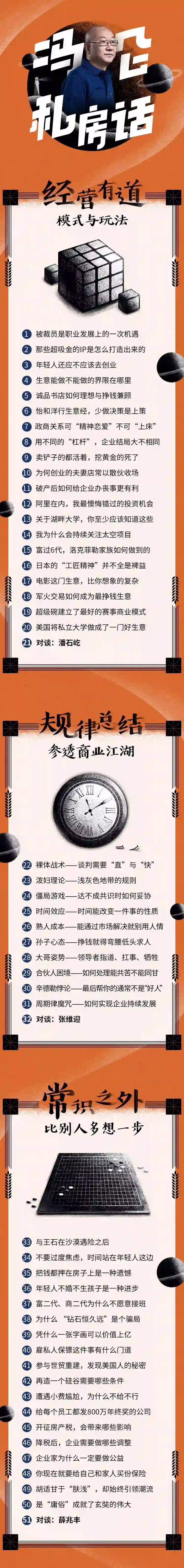 3、一手的企业大佬方法论:潘石屹、王石、沈南鹏、张勇、任正非、李嘉诚等,冯叔通过独家案例故事,告诉你这些成功企业家的行为模式和成功逻辑。