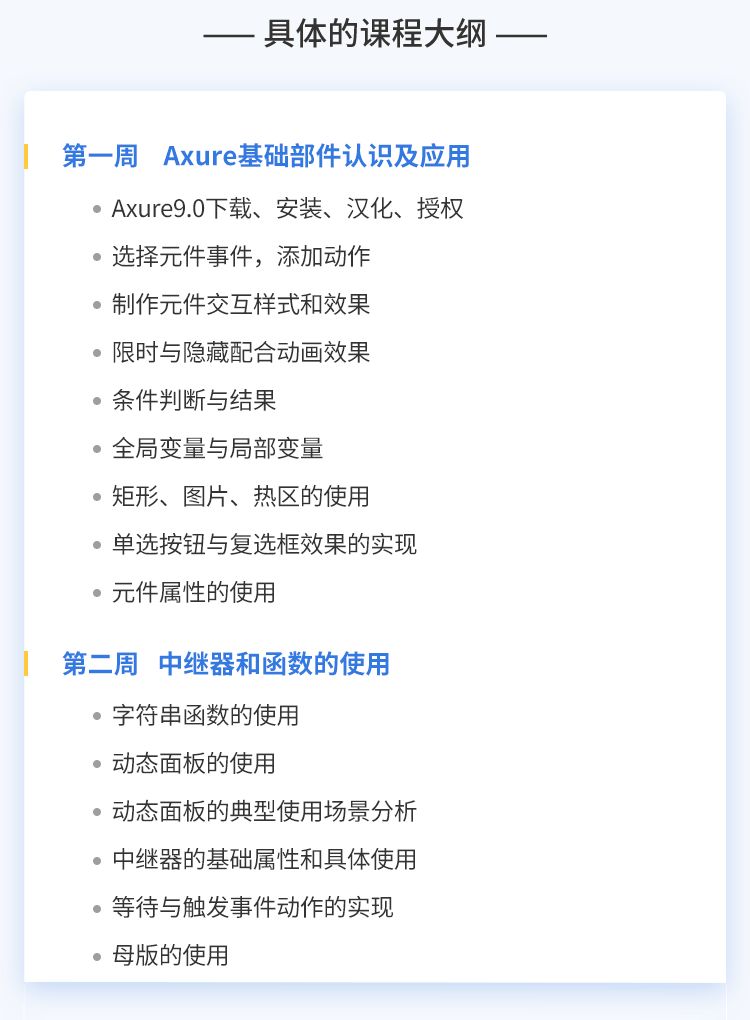 简单来说,是专门为产品经理打造的axure课程。不是一味的停留在工具使用上,而是结合产品经理日常工作内容来教授。