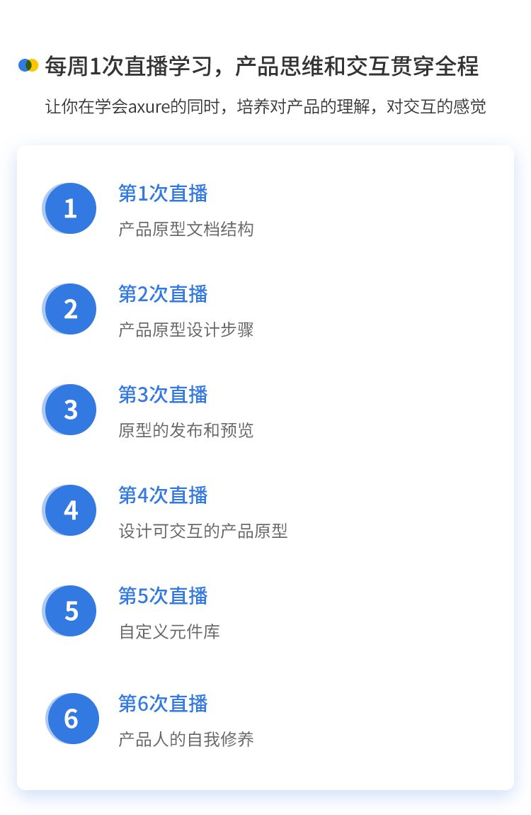 6周每周1次直播:更注重学习产品交互、原型思维