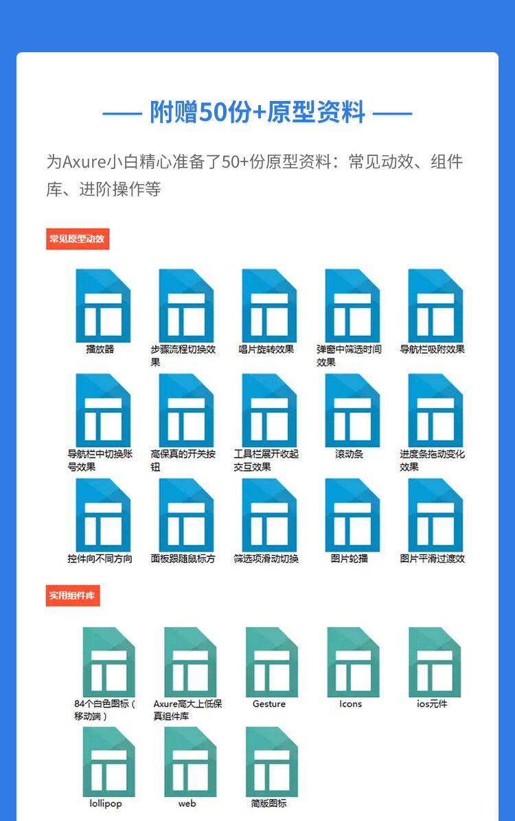 现在报名,除了赠送Axure9.0安装包,还将送50份+的原型资料!不要错过~