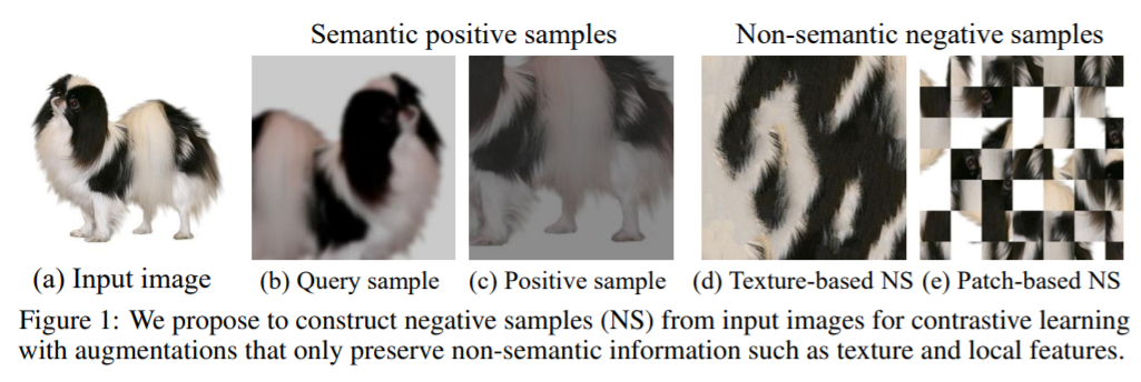 那么,我们应该怎样构建弱语义的负样本呢?作者给出了两种构造方案:基于纹理的负样本生成方法和基于patch的负样本生成方法,下图展示了这两种方法生成的负样本。