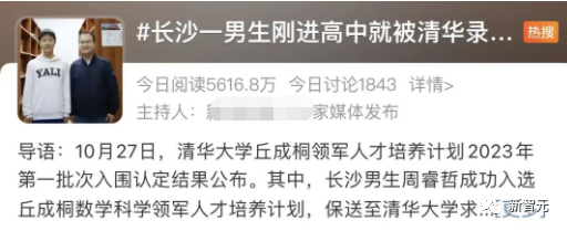 而预科培训后如果通过考察,他将直接开始在清华大学开始本硕博连读,不用再参加中高考。