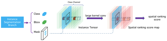 为解决重合问题,研究员引入一个新算法,称之为空间排序模块(Spatial Ranking Module)。该模块学习排序分值,并为子任务的融合算法提供排序依据。