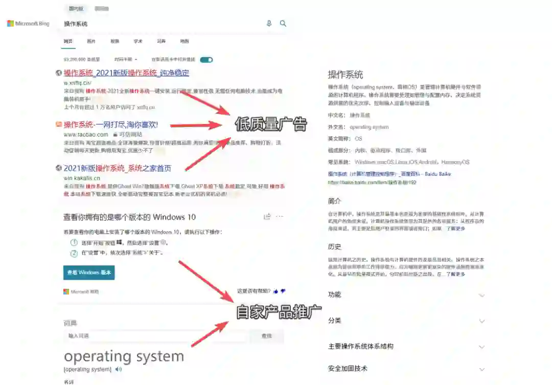 作为一个搜索引擎,Bing 在中文搜索结果的准确性上是不合格的,它更像是微软推广自家产品,投放广告,收集用户数据的平台。更让人不能接受的是,很多情况下 Bing 是开始菜单失去响应、白屏等问题的罪魁祸首。