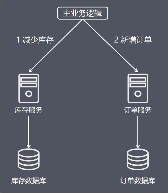 上图中包含了库存和订单两个独立的微服务,每个微服务维护了自己的数据库。