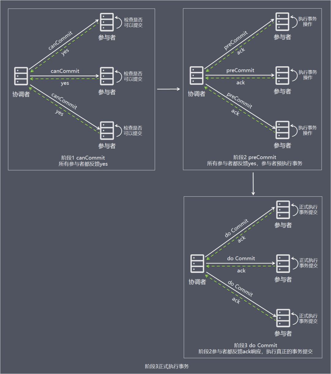 事务操作跨不同节点,当多个节点某一节点操作失败时,需要保证多节点操作的要么什么都不做,要么做全套(All or Nothing)的原子性。