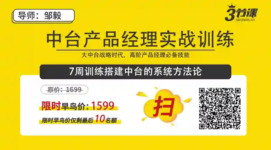 本文作者邹毅,京东数科中台产品负责人,三节课《中台产品经理实战训练》课程主讲老师。