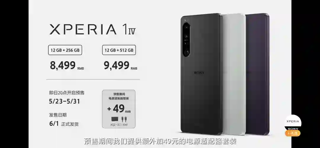 索尼 Xperia 1 IV 国行售价 8499 元起