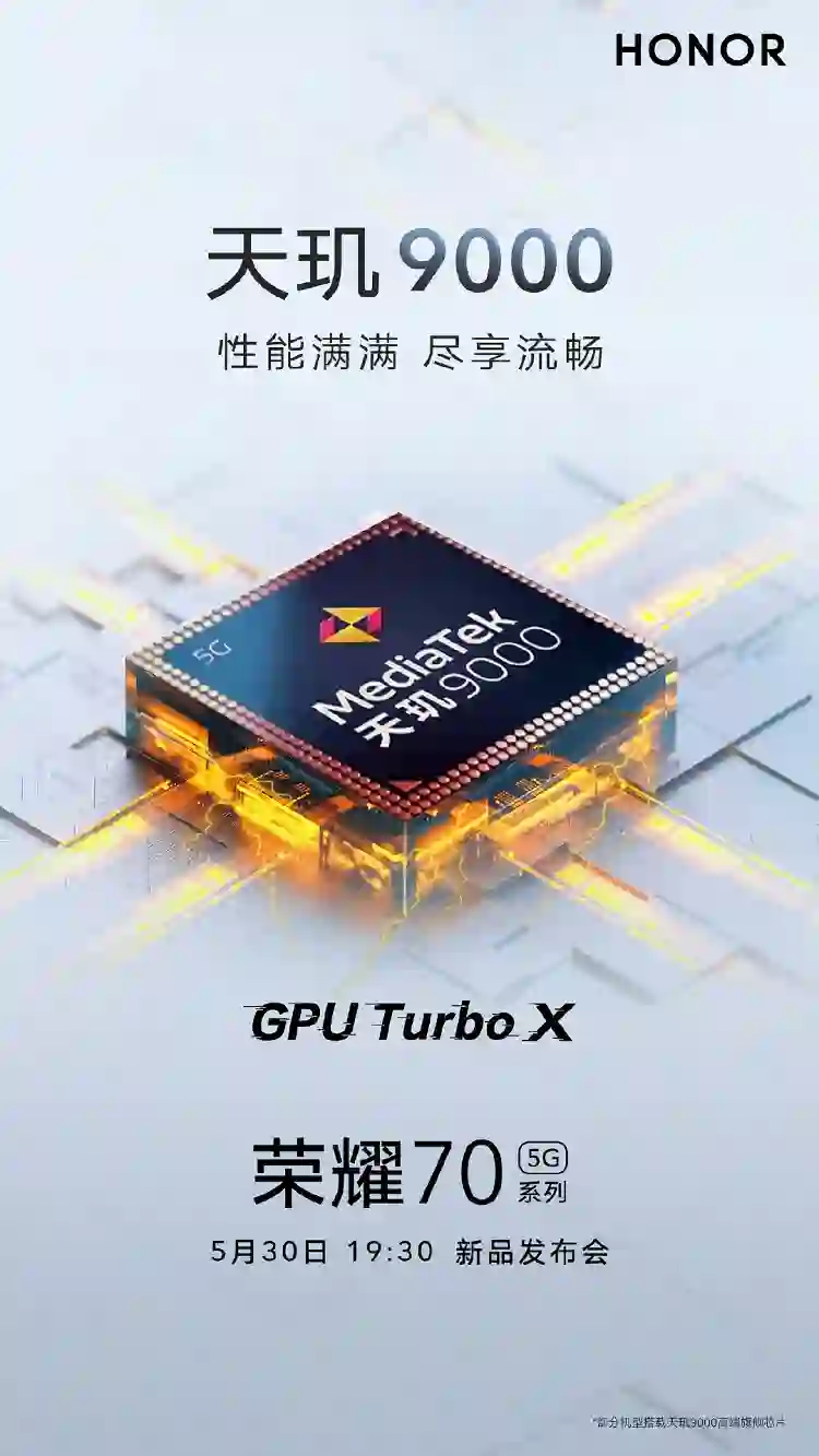荣耀 70 系列官宣搭载天玑 9000 芯片