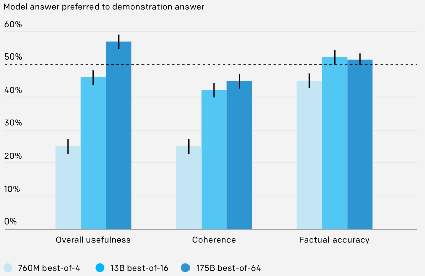 为了提供正确的反馈以提高事实准确性,人类必须能够评估模型产生的回答。这可能是个极具挑战性的任务,因为回复可能是技术性的、主观的或含糊不清的。出于这个原因,开发者要求模型引用其回答的来源。