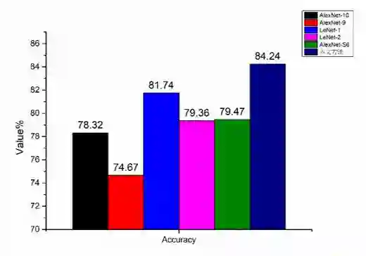 与未进行预训练的经典模型同时运行1万步的比较结果如下图所示。可看出论文网络结构不易产生过拟合现象,究其原因主要是其他网络都属于大型的深层次模型,训练参数大,耗时较大,同时对图片数量要求比较严格,当数据集较小时容易产生过拟合,提取的特征不能充分表达壁画特征。
