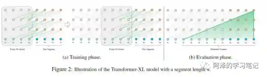 思路:在对当前segment进行处理的时候,「缓存」并利用上一个segment中所有layer的隐向量序列;上一个segment的所有隐向量序列只参与前向计算,不再进行反向传播;