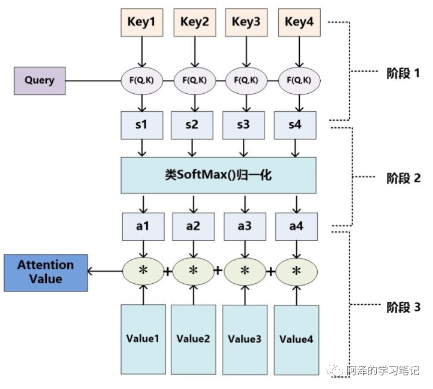 采用不同的函数或计算方式,对 query 和 key 进行计算,求出相似度或相关性
