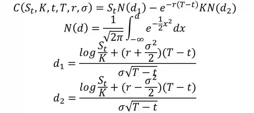 这里,St 代表的资产在t 时刻的价格水平。σ 代表标的资产常数的波动率(即标准差),K 代表期权的执行价格,T 代表期权的到期期限,r 代表常数的无风险短期利率。