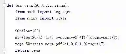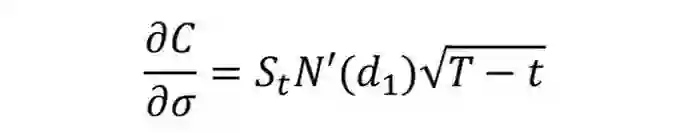 期权定价公式关于波动率的一阶导数称为期权的Vega,由如下公式给出: