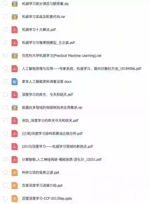 61本机器人学习电子书、37本大数据电子书、30本人工智能电子书、26本深度学习电子书......各大课程视频、PPT帮助你全面了解行业知识,基础知识掌握必备。