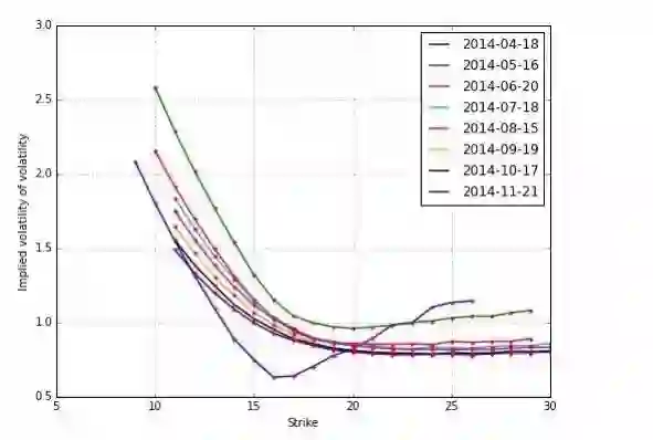 这里我们考虑的例子是关于一项新的期权,即基于VSTOXX波动率指数的波动率期权。Eurex是提供基于VSTOXX和各种期货合同的衍生品交易市场,于2013年6月建立了一个综合化的Python为基础的关于这个指数以及基于此指数的衍生品合同的教程,称为”VSTOXXAdvanced Services”。
