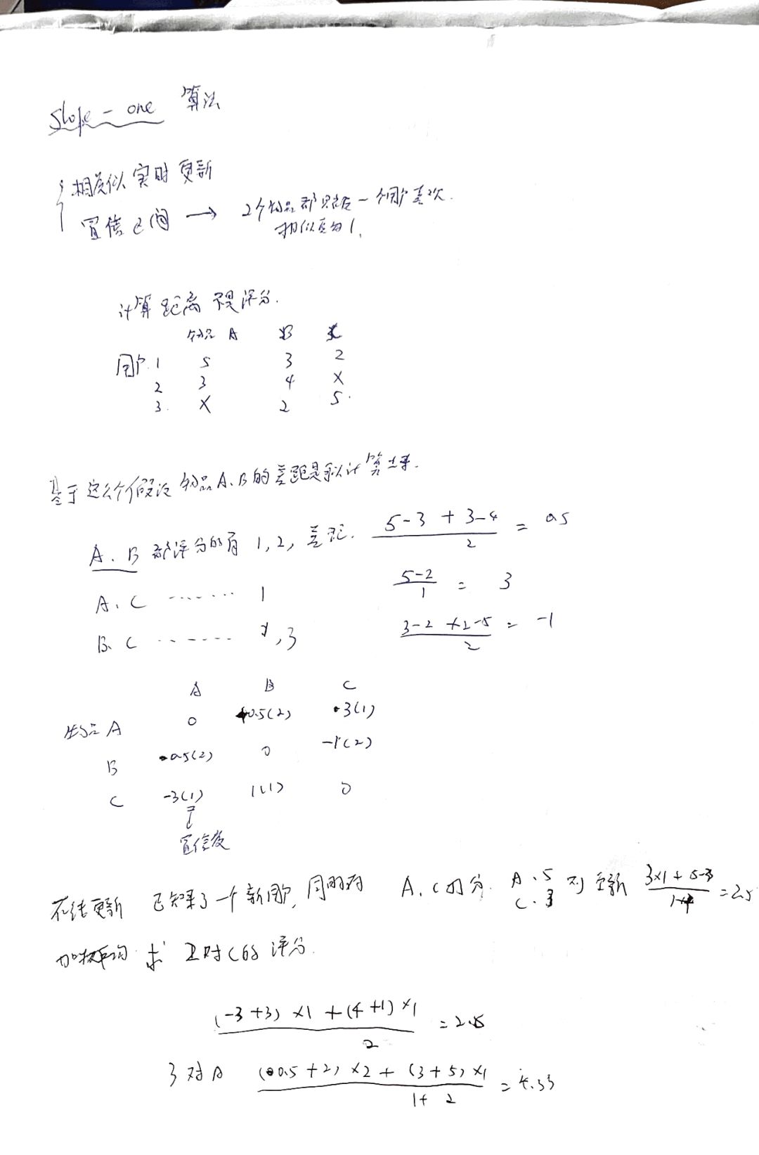 slope one 算法是面对物品协同中模型无法在线更新的问题而提出的。