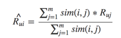 公式左边的表示用户u对物品i的预测,公式右边是一个关于用户u和用户j的一个相似度加权,