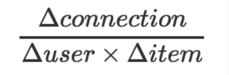 分子是增加的连接数,分母是增加的活跃用户数和增加的有效物品数。