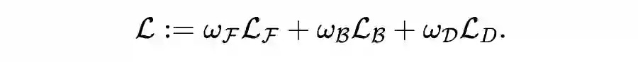相比传统微分方程数值求解的描述,这里多出了第三行式子,也就是对于数据的使用,这也是 PINN 的特点之一。当然,这三个条件也不一定全都出现,比如边界条件消失,从传统数值方法的角度来看甚至不能满足定解条件。