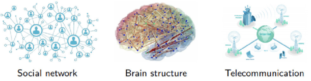 然而,科学研究中并不是所有的数据都能够被转换到欧几里得空间中(eg:社交网络、信息网络等),对于不能进行欧几里得结构化的数据,我们将其称为非欧几里得结构化数据。