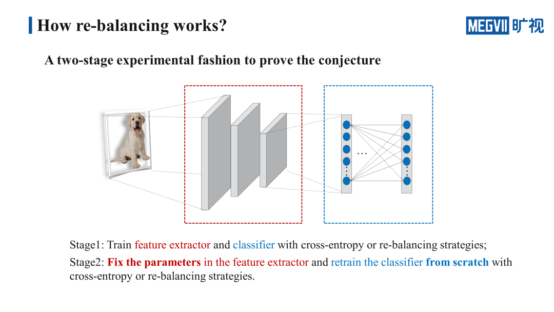 所以我们提出了这样一个猜想,尤其是 re-balancing 这样一个策略它能够工作的机制在于它提升了分类器的性能,但是它又会在一定程度上损害特征的表示能力。我们怎么去证明这样一个猜想呢?