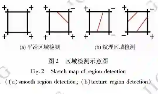 其次,根据图像的区域特征,利用等值线方法将图像自适应地划分为纹理区域和平滑区域,纹理区域采用有理模型插值,平滑区域采用多项式模型插值;