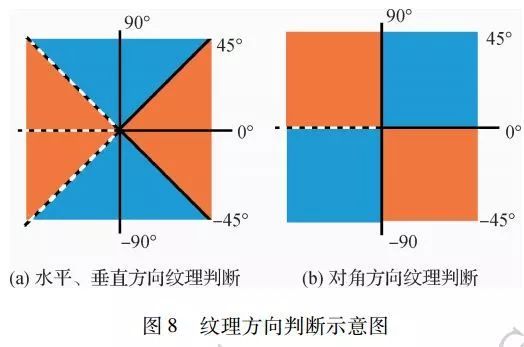 最后,根据各向同性Sobel算子计算插值单元的图像梯度,确定纹理方向,不同纹理方向的插值单元用相应的权重对中心点进行优化。