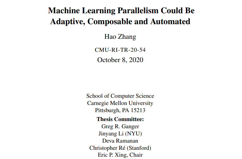 CMU 机器人研究所张昊(Hao Zhang)博士论文新鲜出炉,主要围绕着机器学习并行化的自适应、可组合与自动化问题展开。