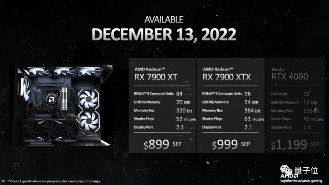 因为AMD将在12月中旬发售RTX 4080的竞品:RX 7900系列,并宣称性能会显著提升,且起价仅899美元。