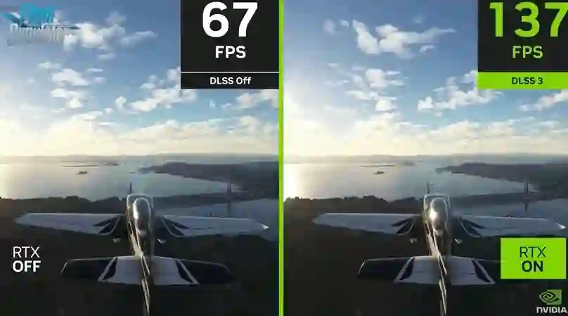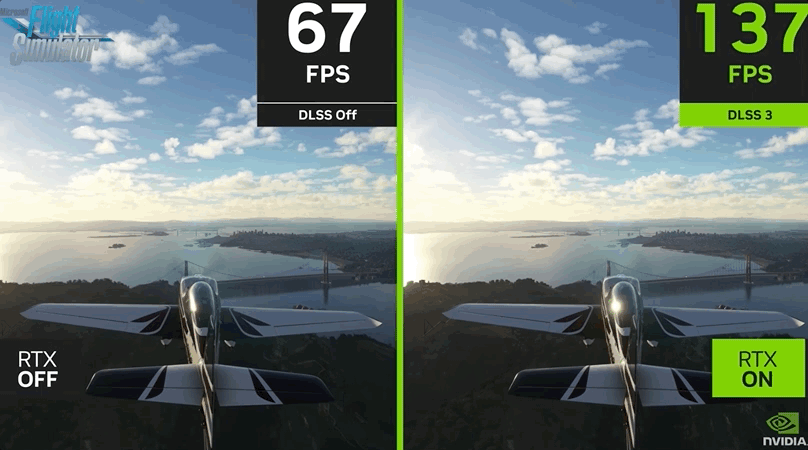 在Flight Simulator的特殊测试版本中,RTX 4080采用的DLSS 3技术,将GPU的平均帧率提高到127fps,而在DLSS 2中仅为59fps。