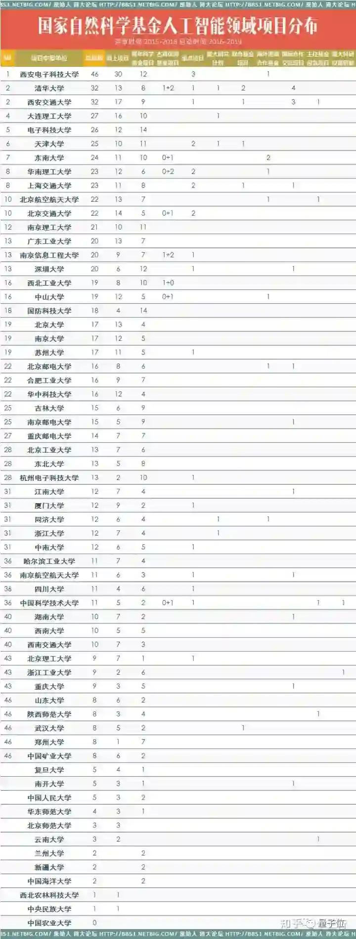 又例如,根据知乎@newwinds引用的网大论坛原始人资料,在人工智能领域,南京信息工程大学申报了20项国家自然科学基金项目,面上9项,其中1项是重点项目。