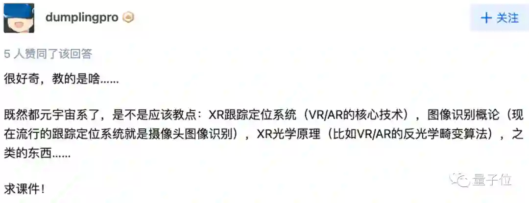 但也有人更好奇这个元宇宙工程系会教什么,并提前“求课件”: