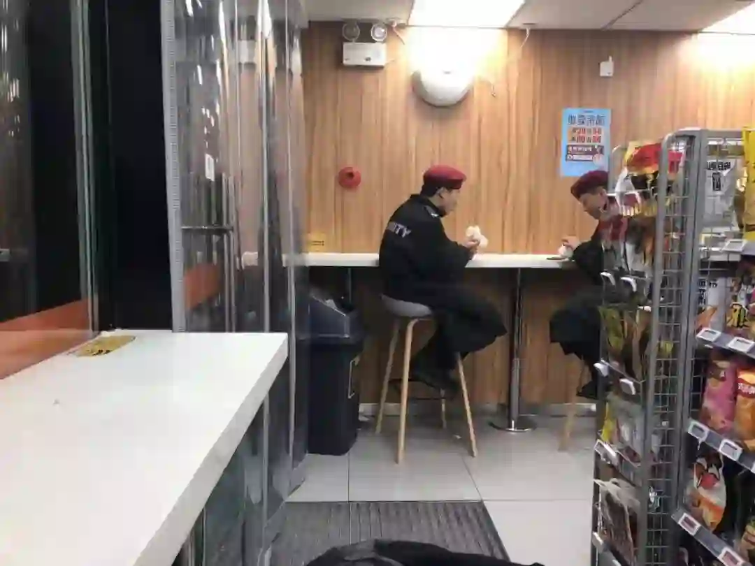 原本以为酒吧林立、酒鬼遍布的这家7-11会异常混乱,不曾想一进门,就和目光警惕的保安对上了眼。最多时,会同时出现3个保安,在店内外不断巡视,一发现苗头不对,立刻上前劝离。