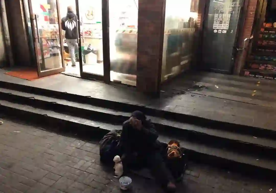 清理过后,一位老婆婆带着小狗,出现在便利店门口乞讨。没有支付宝支付码,也没有微信支付码。偶尔会有人路过,把在便利店购物找的零钱递给她。