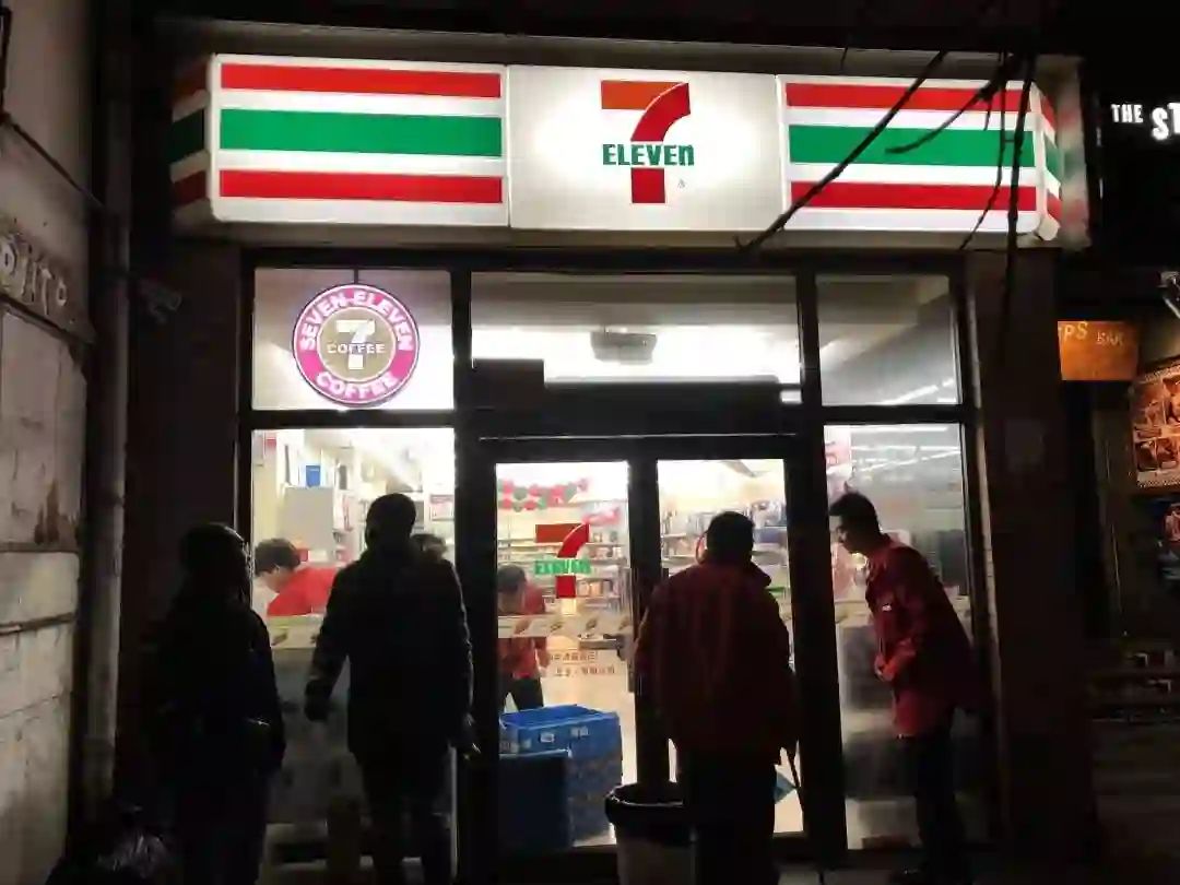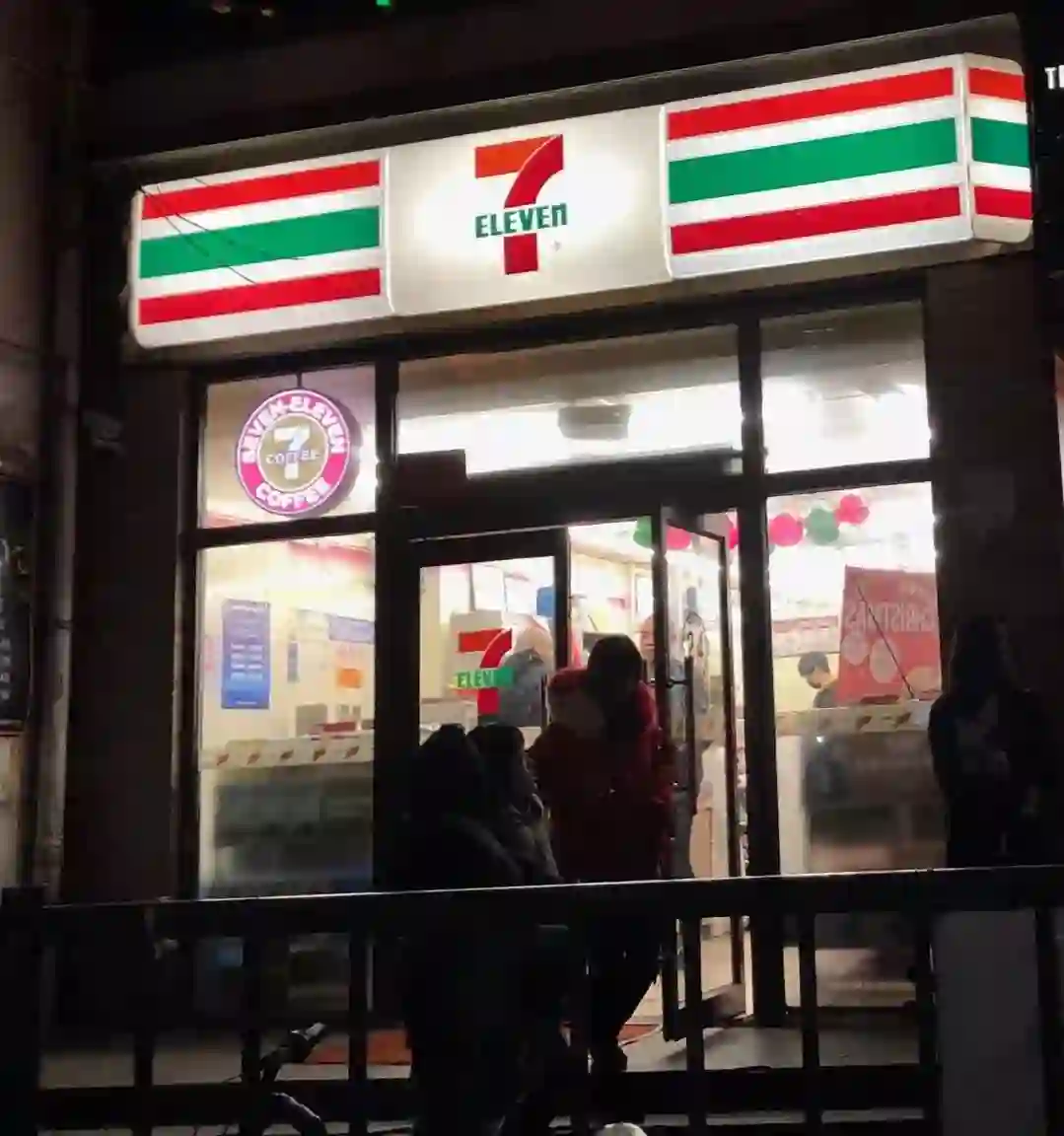 和一般便利店不同,这家7-11一到周末深夜,便显得格外忙碌。很多「派对动物」会在蹦迪蹦累,或者喝醉时,走进便利店,买上一包烟或者关东煮,然后在店门口逗留清醒一下。