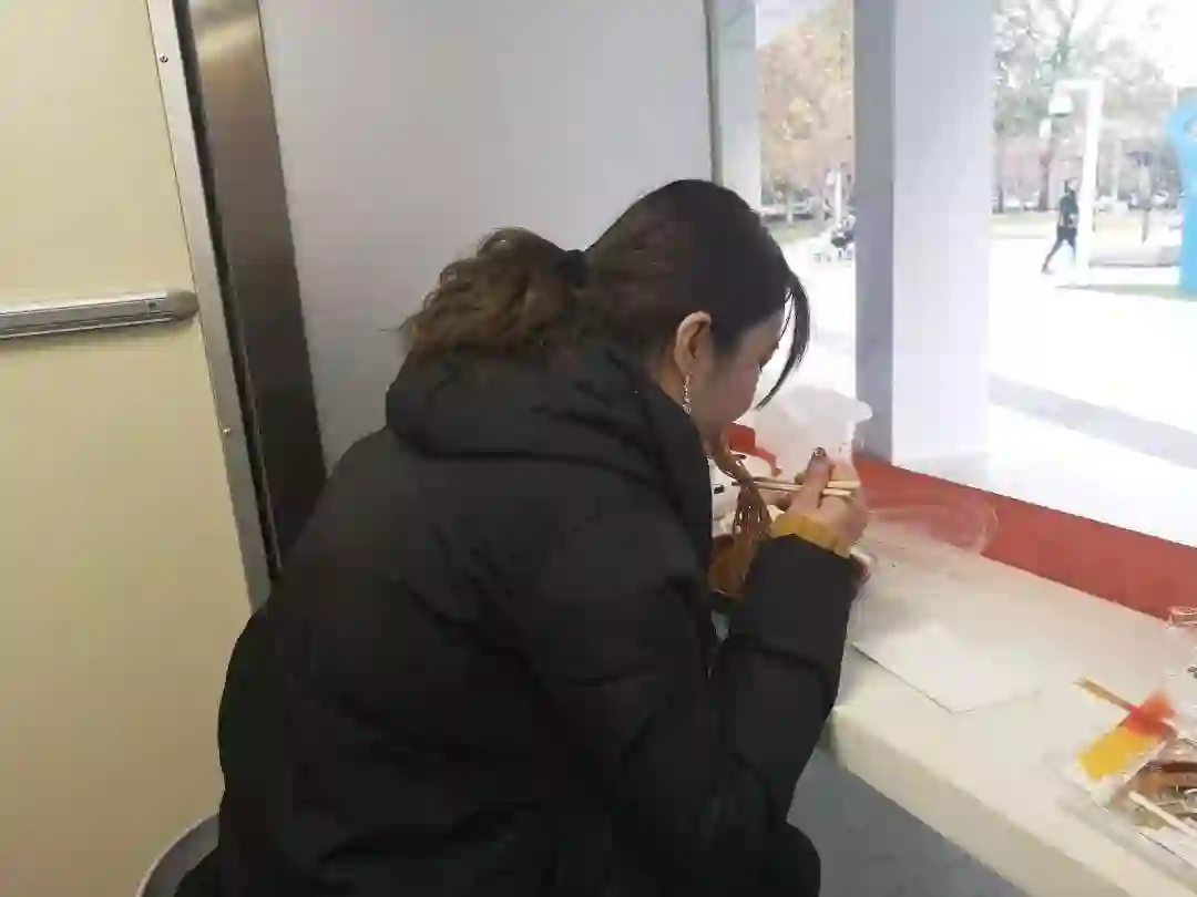 身旁的这个男孩,进店买了一份便当,加热后准备开吃时,接到了一个工作电话。20分钟后,通话结束,热好的便当也冷掉了。他叹了口气,又把饭重新热了一遍。