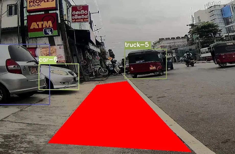 然后我们必须将这辆特定车辆作为日志条目放入viol_matrix数组中,因为该车辆现在已经违规了。这避免了进一步的重复和错误的日志条目。然后,我们可以拍摄该违规车辆的图像并将其保存为车辆类型,并将跟踪 ID 作为其名称。