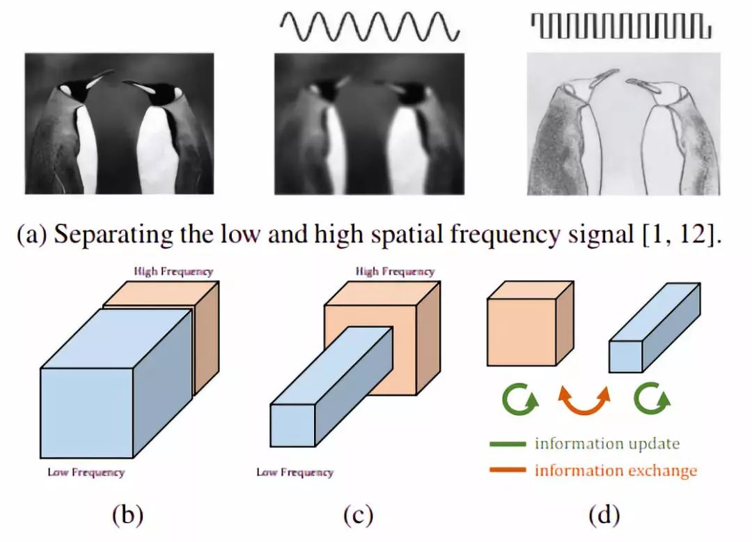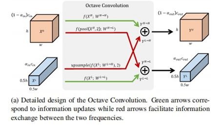 (d)所提出的OctConv直接作用于这个表示。它会更新每个组的信息,并进一步支持组之间的信息交换。