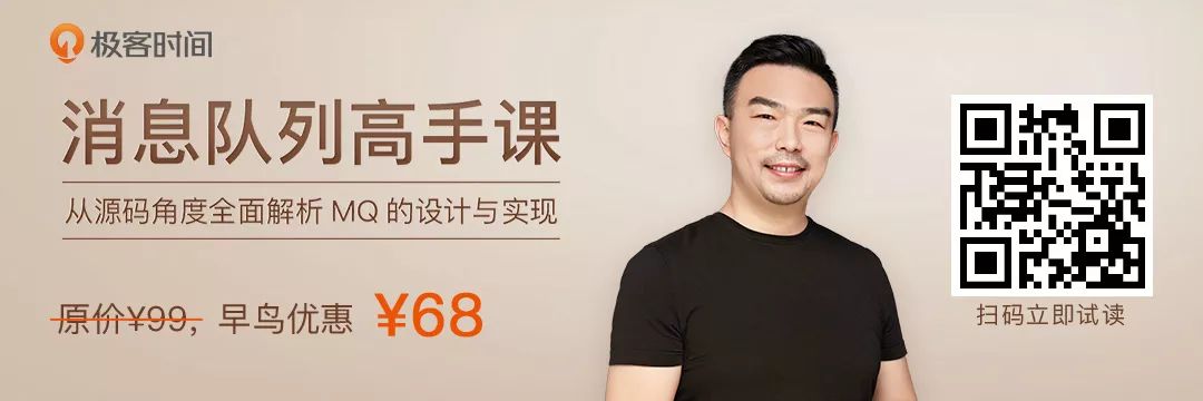 在设计开发中间件系统的过程中,我读了很多优秀开源软件的文档和源代码,从中学习和借鉴了很多优秀的设计思想与编码技巧,也融入了很多自己的思考和创新。这段经历对我而言弥足珍贵,所以我和极客时间合作了 《消息队列高手课》 专栏,希望把我学到和悟到的这些底层、通用、有深度的技术分享给你。