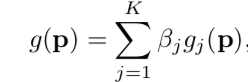 将这些高斯分布结合起来,则可以用一个高斯混合分布(MoG) 表达:
