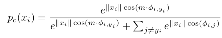 其中 m 是超参数,来控类别之间的 angular margin。当 m = 1 时,上式完全等价于 Angular softmax loss 的后验分布。