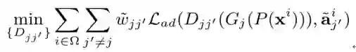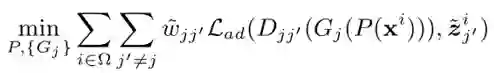 其中是对抗学习的损失函数, 是(j, j’)属性对的权重。