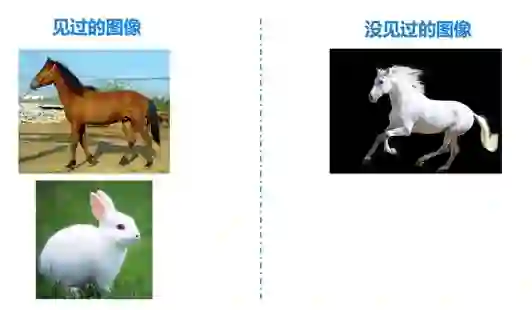 如图4所示,假设我们只见过棕色的马和白色的兔子,那么我们随机组合马和白色,组合出白色的马,模仿人想象没见过的白色的马。