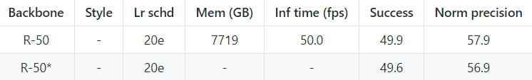 对单目标跟踪算法 SiameseRPN++ 的实现结果(第一行)相比于官方实现(第二行),在 LaSOT 数据集上的 Norm precision 超出 1.0 个点。