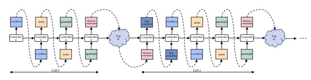 然后使用循环神经网络(RNN)控制器对这些构建块进行采样,将它们组合在一起,创建一种端到端架构;