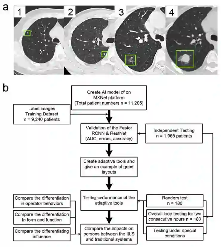 在这项研究中,我们寻求开发基于人工智能技术和自适应布局工具融合的智能成像排版系统(IILS),以建立日常工作的新流程,并为放射科医生和临床医生提供标准化图像和报告。同时,我们从三个方面评估IILS的综合实力,包括i)IILS与临床专家之间结节诊断效率的比较;ii)IILS可以优化临床工作流程的程度;iii)IILS的交叉制造适用性(cross-manufacture applicability)。