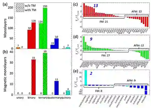 近年来,基于第一性原理的高通量筛选方法逐渐成为发现新材料的途径,为寻找本征二维磁性材料及研究新奇电子性质提供了新手段。最近,中国科学院物理研究所/北京凝聚态物理国家研究中心表面物理国家重点实验室SF10组博士研究生刘行在孙家涛副研究员和孟胜研究员的指导下,搭建了高通量筛选二维磁性材料的第一性原理计算流程及相关数据库,从材料数据库中发现了数十种新型层状磁性材料。一些具有高居里温度的铁磁材料还呈现出新颖拓扑电子态。