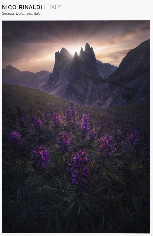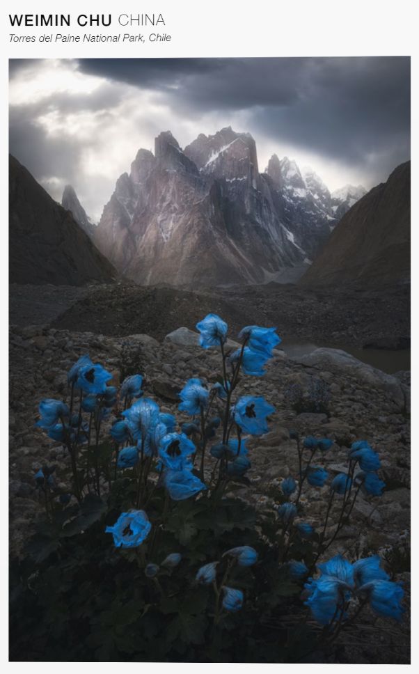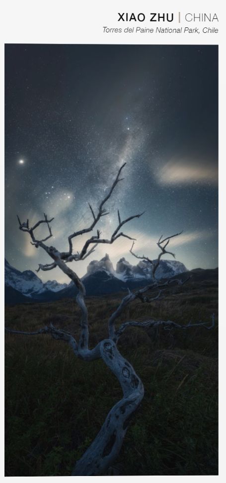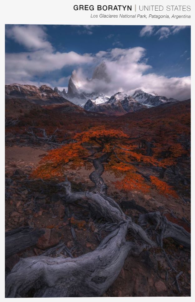 值得庆祝的是来自中国的摄影师Zhu Xiao(枪炮玫瑰),凭借其捕捉到的异常壮丽的阿根廷Fitz Roy峰日出,获得了日出日落组的第一名。